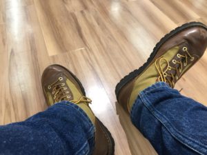 キレイなデニムなので、あえてごついブーツと合わせるのが良い感じ