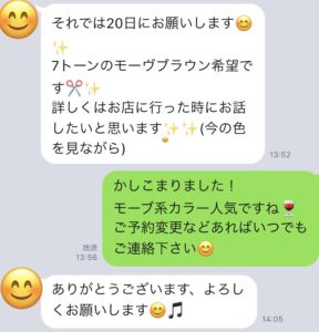 【ご予約のお問合せLINE@】を頂戴しまして