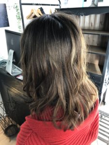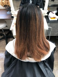 根元が暗めで中間〜毛先に向けて明るくなっていきます