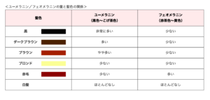 髪の毛の色は、色のもとになる メラニンの種類や量によって違ってきます
