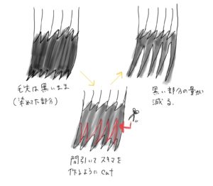 間引くようにヘアスタイルに合わせて活かすカットを施します