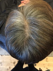 こちらのお客様の場合、白髪の割合も多めですので伸びたきた際に