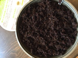 乾燥した土(圧縮培養土というらしい)をカップにあけ