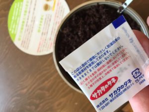 あとは発芽までは水をたっぷりやって一ヶ月後くらいに付属の栄養剤を与える、と
