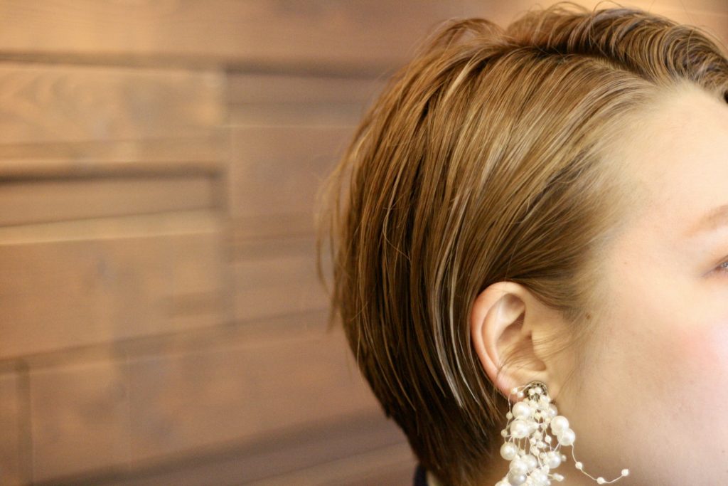 ・ショートストレートで濡れたようなウェットなヌーディな質感